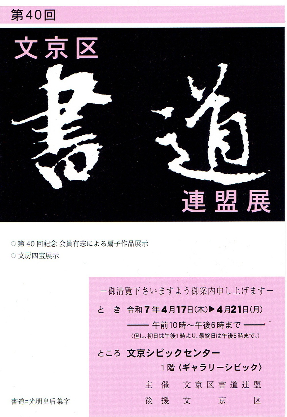 | 2025.3.17 | 第40回文京区書道連盟展開催のお知らせ